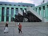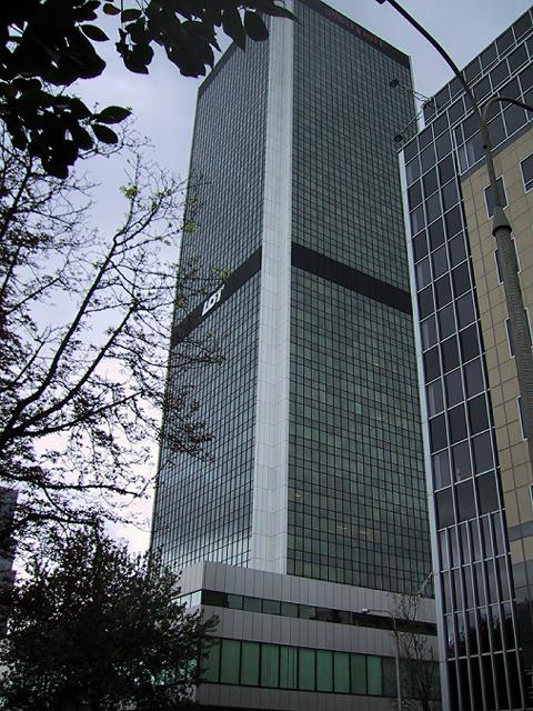 食事後、外へ出てみる。風があり、髪が乱れる。ホテルは丁度位牌のような形。上の高いところが客室で、下の台形のところはいろんな施設。事務所も入っているらしい。電車やバスが大型だ。電車はウィーンのように二両連結。バスも途中で折れるものが多い。