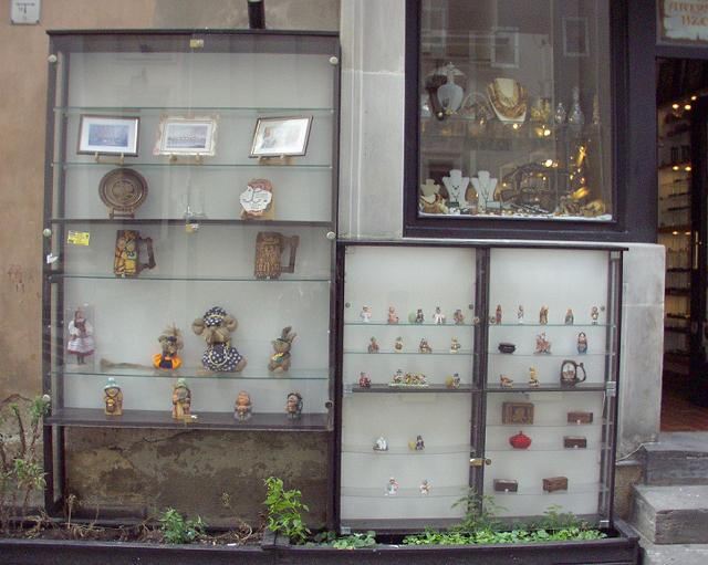 | 土産物店 | 青空市場 | ヨーロッパどこにでもある 道に突き出た看板 |