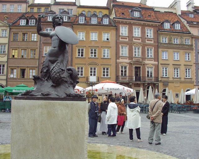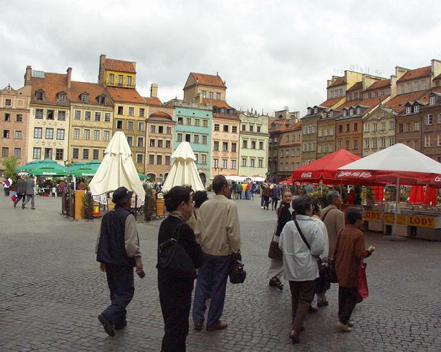 50人は乗れる大型バスで、9+1+1人で観光が始まる。新世界通りを通って、旧市街の教会へ。例によって観光客用の馬車もいるのはどこの観光地とも同じ。この辺り、第二次世界大戦でほとんど壊されたのだが改修・再建して昔の街並みに近いものを作っている。