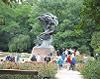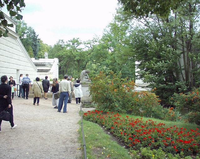 そこからバスでワジェンキ公園へ。ショパンの像(柳の木が覆い被さったような)は芝生の中の丸い池の向う側。顔がよくわからない。右に回って行くと、なんと顔は右へ向いているのだった。正面から見ても顔がどうなっているのかわからないのは当たり前だ。