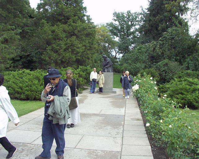 裏へまわるとまたしても記念碑。そして、記念撮影。建物の右側にちょっとスペースがあって、休めるようになっているが、建物にはめ込んだスピーカーでピアノ曲がやたらと大きな音で流れているのには幻滅。公園のショパン像のそばでピアノを聞かせる時があり、これを聞くのは楽しいが、家のからスピーカーで流れるピアノ曲はいただけないとウルスラさんが言っていたのはこれだったのだ。