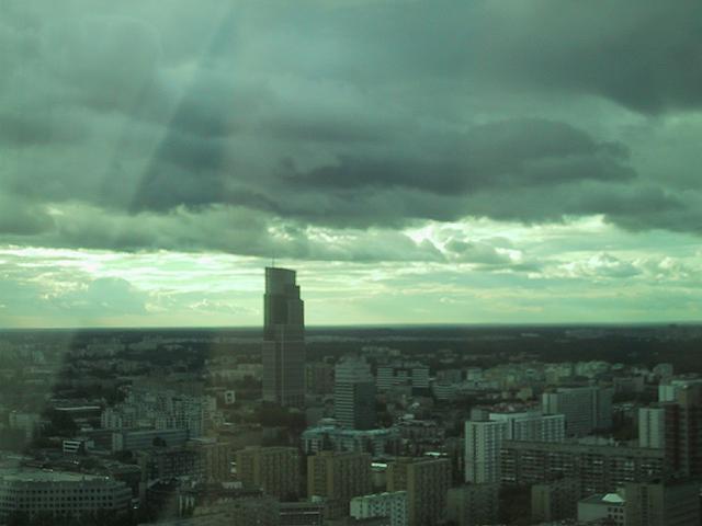 インターネットであらかじめ調べておいたこの日のワルシャワの天気は曇(CNN)と雨(yahoo)だったが、窓から見ると雨が降ったらしい形跡があるし、空は曇って遠くは霞んでいる。TVの天気予報では17度で夕立があるという。さあ、今日一日どうなるか。