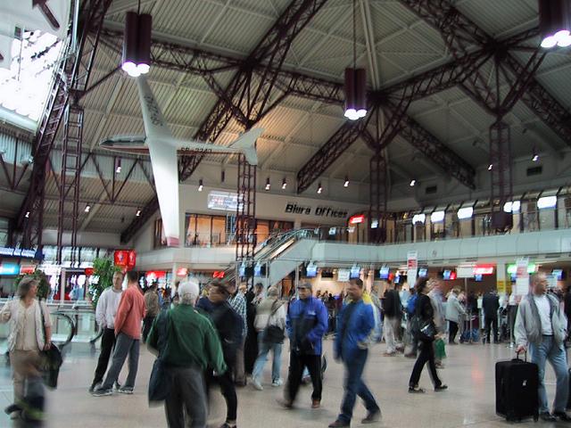 曇ってはいるが、降ってはいない。涼しい。空港には7時17分頃には着いてしまった。空港が近いことと土曜日が重なったためだろう。小さな空港で、ロビーも簡単だ。頭の上に軽飛行機がぶら下がっていたり面白いので写真を撮ろうとしたが、人々を無断で撮ってはいけないかもしれないと気にしたせいか、ぶれた写真になった。