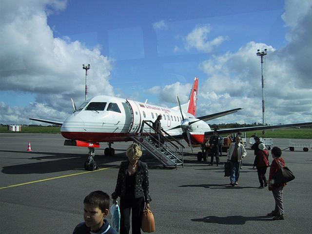 | SAABの双発機に乗り込む | ヴィルニュス着 | |