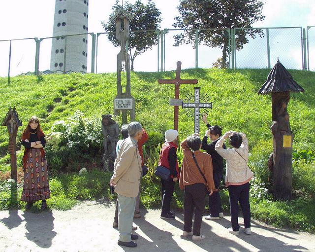 そこから、ソ連が建てたらしいTV塔の下へ行く。ソ連からの独立が難航している時、91年1月13日、テレビ局占領を阻止しようとする市民をソ連軍が弾圧してヴィルニュスの血の日曜日事件が起きたが、その犠牲者を記念する十字架などがあった。