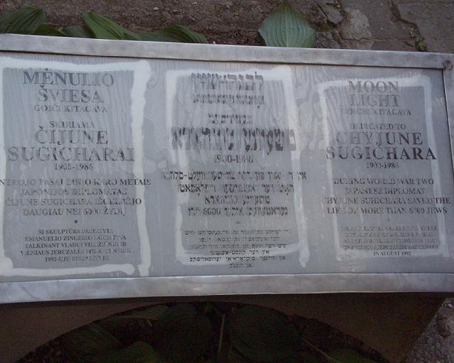 ついで街の中に入って、杉原千畝さんにささげられた記念碑を見る。ゴイチ キタガワと言う方が作った「ムーン・ライト」と言うタイトルのもので、人が大きな半月をささげ持つような形の抽象造形(石)である。それが、以前ユダヤ人街であった辺りに建てられている。