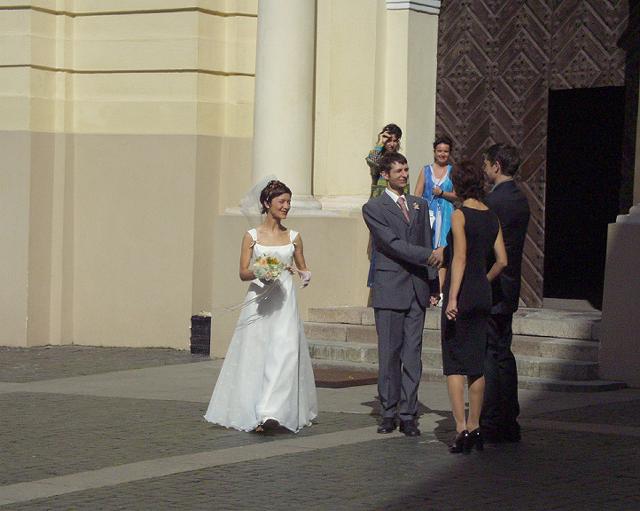 ところで、この日は土曜日だからか、やたらと結婚式が多く、あちこちで嬉しそうなグループにぶつかった。花嫁さんはどこの花嫁さんも美しいものだ。そして、花婿の満面笑みを浮かべているのも同じ。グループの中に立派なたすきをかけている人がいるのは何の役だろう。英語で言うベスト・マンのようなものだろうか。
