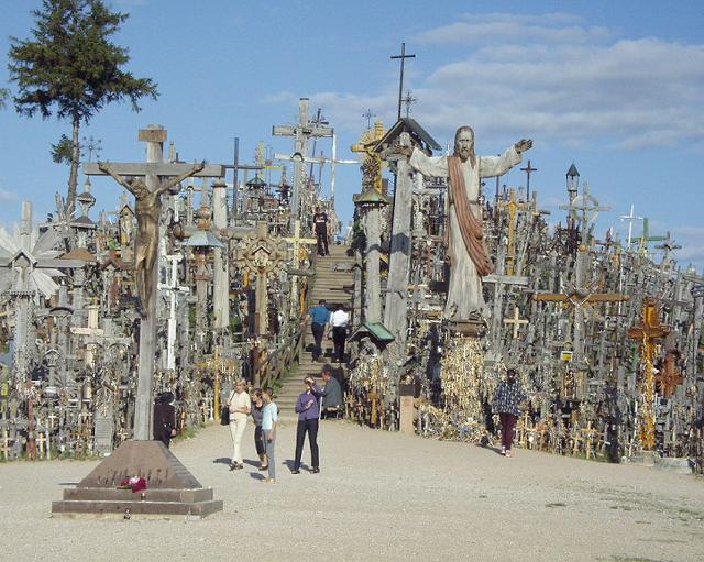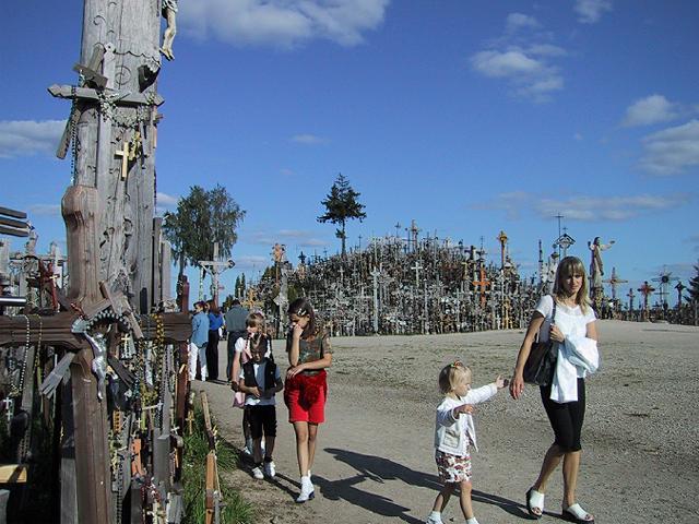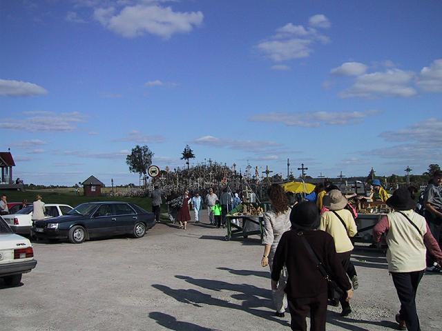 カウナスを出ると北へ向かって走りラトビアの首都リガへ。途中、風車をかたどったレストランで小休止。しばらく行くと十字架の丘。低い小さな丘だが、何時の頃からか十字架を立てる習慣が生まれ、沢山の十字架が立てられるようになった。ソ連時代には根こそぎ撤去されたこともあったそうだが、夜ひそかに立てに行ったりしたそうだ。今は丘だけでは足りず、そばの平らなところにも無数の十字架が立っている。駐車場には観光バスも何台か。そして、例によって土産物店があり、丘に立てるための十字架も売っている。