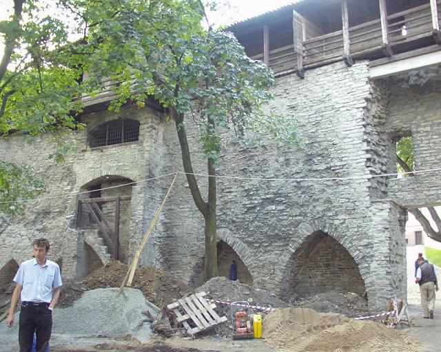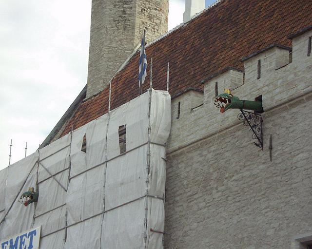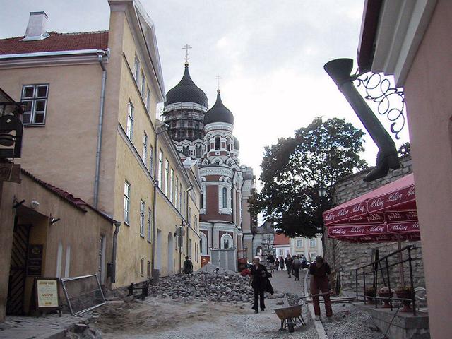 大聖堂(アレクサンダー・ネフスキー寺院 ロシア正教)の前を抜け、昔の城壁を見に行くがここも工事中だ。辛うじて「のっぽのゲルマン」と呼ばれている高さ50mの塔や「台所を覗けの塔」を見る。後者は1470年に作られた見張り塔の一つだが、その名前は塔の上から近所の家の台所が覗き見できたことに由来すると言われている。