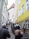 そうこうしているうちに、すぐ30分が過ぎ、広場に集まる。聖ニコラス教会の脇から急な石段の「短い足通」、なだらかな坂道の「長い足通」(面白い名前。日本なら、さしずめ男坂、女坂と言うところ)を通って大聖堂の方へ上がる。この街も道路工事が多い。でこぼこになった石畳をはがして、平らに貼りなおしている。