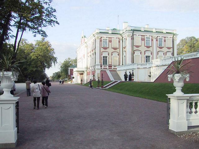 バスにしばらく揺られてカドリオルグ公園へ。カドリオルグは「カテリーナの谷」の意味だそうで、ピョートル大帝がカテリーナ皇妃のために作った公園。その中の夏の宮殿はバロック様式で、美術館をかねているそうだが見る時間はなかった。フランス式のこじんまりした庭園と宮殿の外観を見て、有名な野外音楽堂へ。
