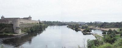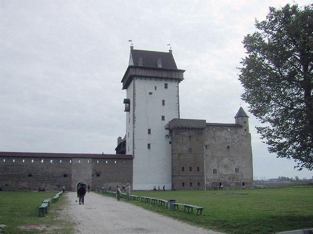 NARVAは国境の町。その町の中で、最も国境に近い城へ行く(午前11時ごろ)。その時は、ただ、ぼんやりと城の周りや川の景色を見ていたのだが、あとで気がつくと、川の向うはロシアだったのだ。城の中で食事をしていると、別の日本人団体がやって来た。城壁の内側には前衛的な木彫の野外展示がされていた。