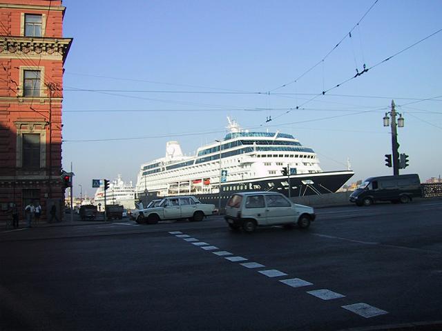 川端さんは、四国のご夫婦が提供した杖をついて現れた。9時出発で、まず行ったのは土産物店。やれやれ。ここで一時間ほど費やす。用のない私は、一人外へ出て、ちょっと歩く。大ネヴァ川のシミット橋の辺りに行くと、リガで見、タリンでまた見たクルーザが来ていた。アメリカ人の観光客が乗っているはずだが、どの辺りを歩いているのだろう。