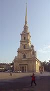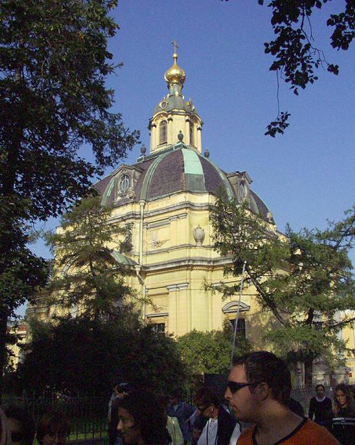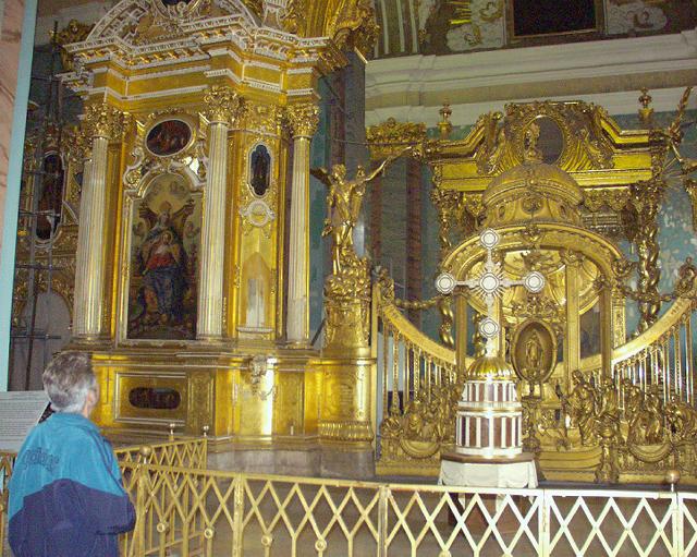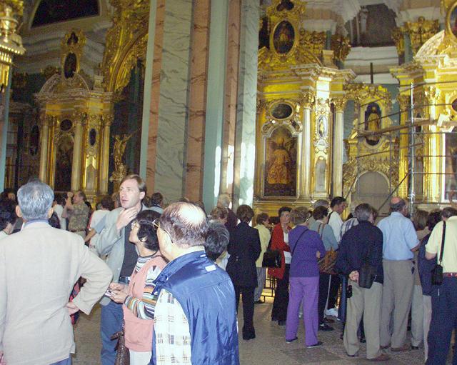 バスを降りて、要塞の名前の元となった、高い尖塔(122m)を持つペテロパブロフスク寺院に入る。内部の装飾の金ピカには恐れ入った。