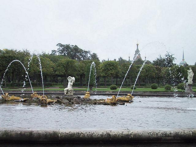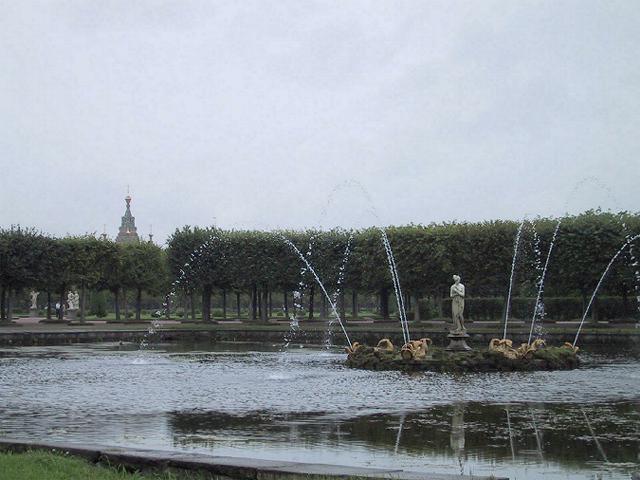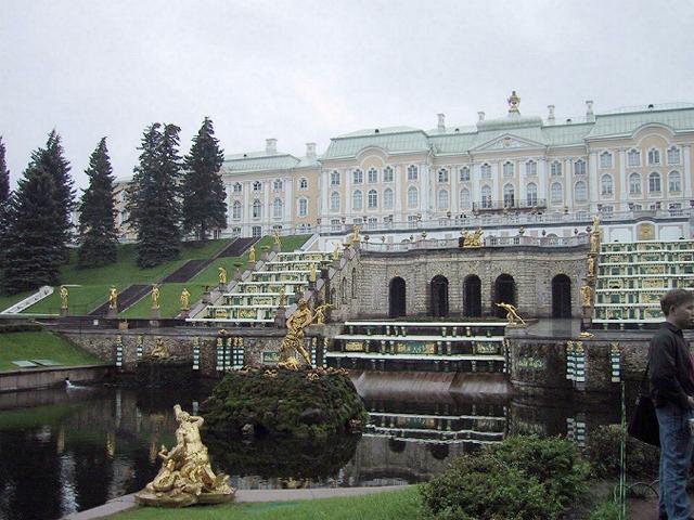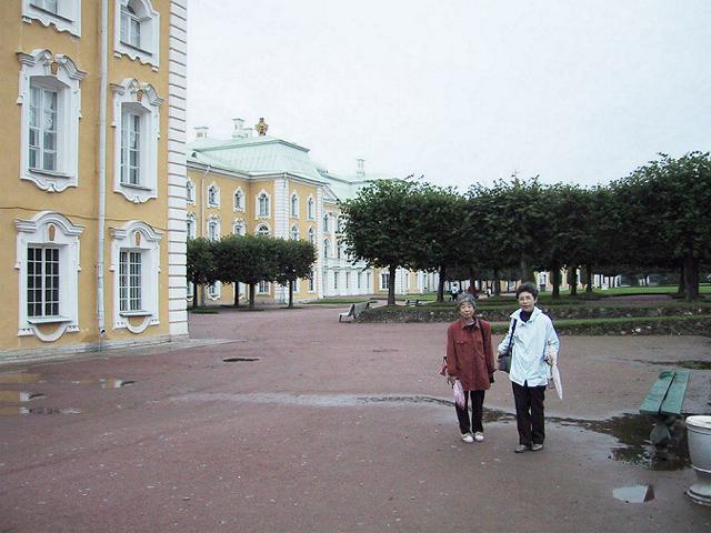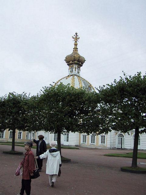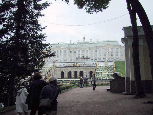 ここまでどのくらいたっただろう。10時に船着場に着いたのだが、10時半に小さい噴水の水が出始めた。11時には例の楽士たちのファンファーレと共にサムソンの噴水が出始めたのだから、もう1時間以上待っていることになる。この宮殿も、内部の写真を撮るには80ルーブルの許可証を買う必要があるというので、みなそのためにお札を用意していたが、この状態では写真を撮るひまなどなさそうだ、節約しようと言うことになってみんな引っ込めてしまった。確実に、80×5=400ルーブルくらいは儲けそこなったはずである。
