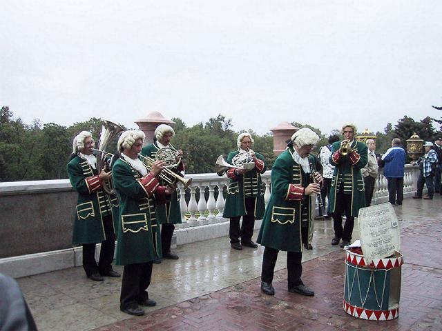 中世のコスチュームを着た男女(写真を撮るためだが、一回1ドルとのこと)、数名の楽士たちが現れる。中世のものらしい曲を演奏している。待っている私達の心を和ませてくれるのかなと思っていると、看板があった。曰く「宮殿の改修のための寄付をお願いします。」