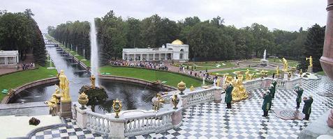 ピョートル宮殿の船着場は、海に突き出た突堤の先のようなところにある。そして、その突堤の中に運河のような水路が作ってあるのだ。ここはベルサイユ宮殿を模して造ったのだそうだが、造ってから水路を真似して作ろうと思ったら距離が足らず、海の中まで突き出てしまったのではなかろうか。下司の勘ぐり。