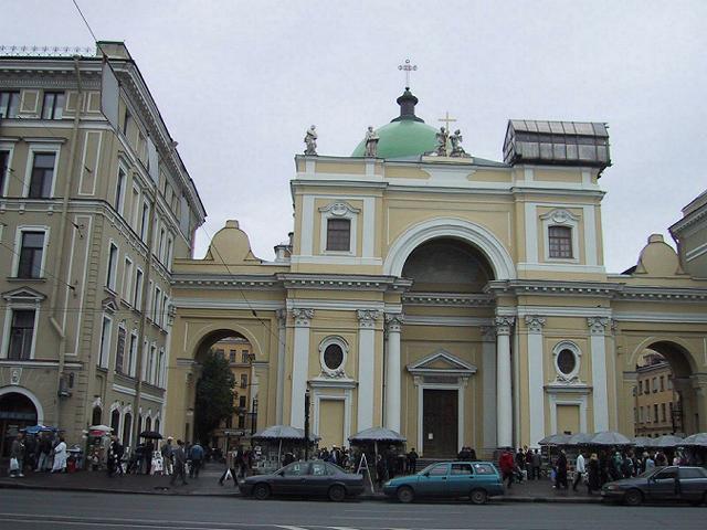 ネフスキー大通りのもう一つの観光ポイント、カザン寺院は改修中で近寄れなかった。