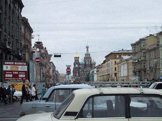 と言うことで、午後3時、ご婦人二人連れと一緒に、一番の繁華街というネフスキー大通りへ行くことにした。途中、マクドナルドもあったし、横断幕に「KENZO」なんて書いてあるのもあった。デパートがあるというので探したが、よくわからず、その代わりドルショップを見つけた。小さな入り口から入ると、やけに高級感のあるものばかり、そのように飾ってある。そして、ついている値札の数字が小さすぎる。警備員みたいなのばかり目に付き、肝心の店員が見当たらない。やむなく、警備員に聞くとドル表示だと言うことだったのだ。