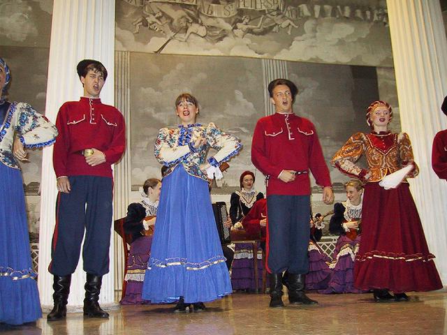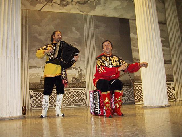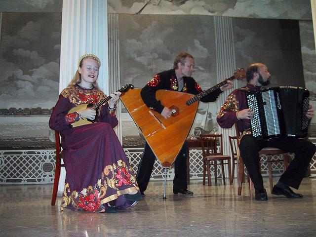 会場は三階の左手前の部屋。百名くらい入れる部屋だが、階段状になっていない。これでは前に大きな人が来るとやばいとばかり、一番前の左寄りに席を占めたが、ちょっと近かったかもしれない。でも、迫力は申し分なかった。四名から、10名くらいの小さなグループの演奏、演技だったが十分楽しめた。バラライカにあのように大きなものがあるとは知らなかった。まるで、コントラバスのようだ。舞踊も民族性豊かなもので、活発なもの、コミックなもの、なかなか楽しませてくれた。