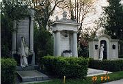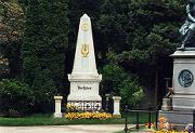 9時ごろに出て、市電49、地下鉄U2と市電71を乗り継いで中央墓地へ行く。ガイドブックにも1ページ以上を割いて、地図、写真などで紹介しているくらい沢山の音楽家の墓が集まっている。モーツァルト、ヨハン・シュトラウス(父、子)、ヨーゼフ・シュトラウス、ブラームス、ベートーヴェン、シューベルト、グルックなどなど。一つ一つ確かめながら見てまわる。あ、モーツァルトのはもちろん記念碑だけ。彼は気の毒にも共同墓地に葬られたのだった。