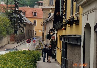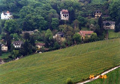 | 教会から少し下った辺りからのドナウ川の眺め | 手前はブドウ畑 |